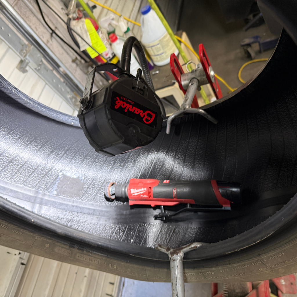 We pull the wheel off, pop the tire off the rim, and inspect the inside like we’re CSI: Tire Edition.